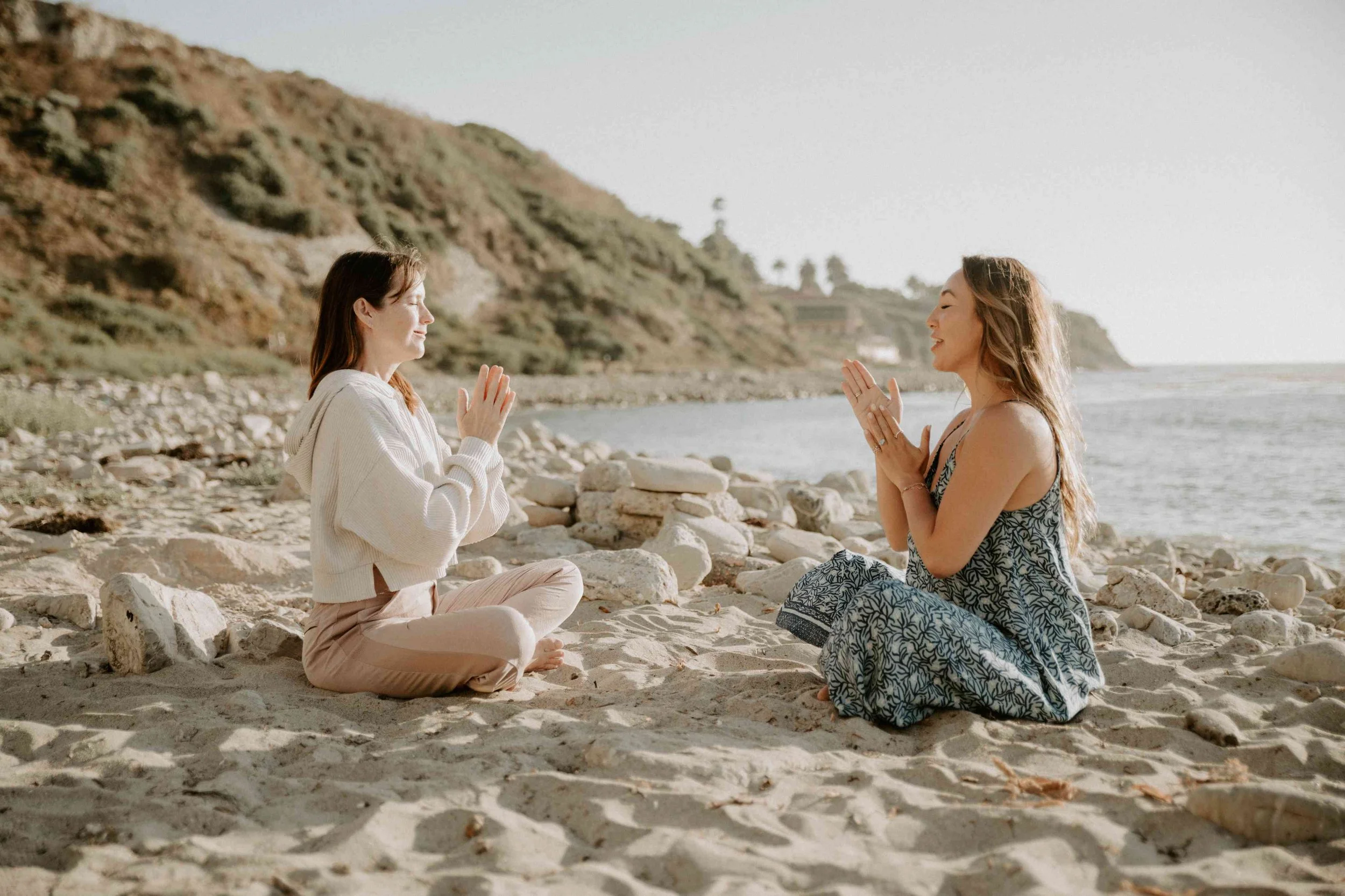 We start with a check-in on the beach, using simple grounding and mindfulness practices to help you settle into your body and mind before beginning.